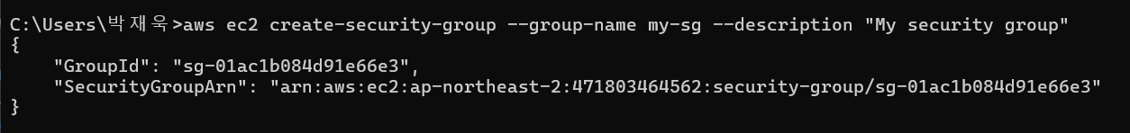 | aws ec2 create-security-group --group-name my-sg --description "My security group"