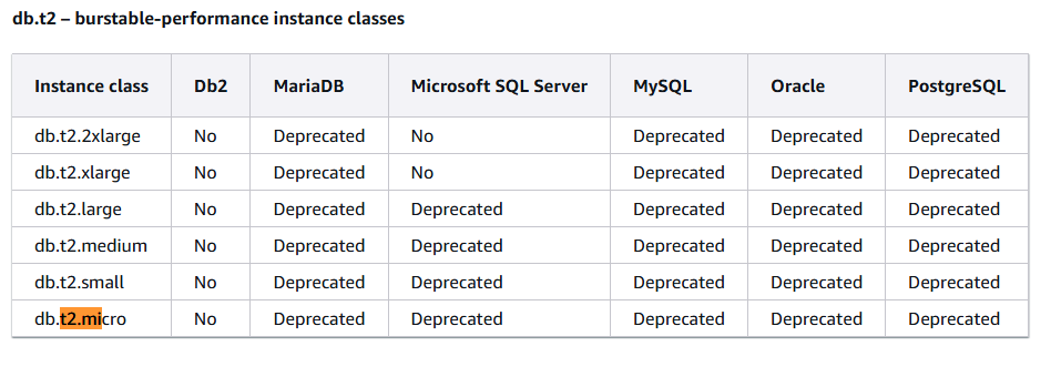 - t2.micro를 지원하는 db가 없는 것으로 확인함